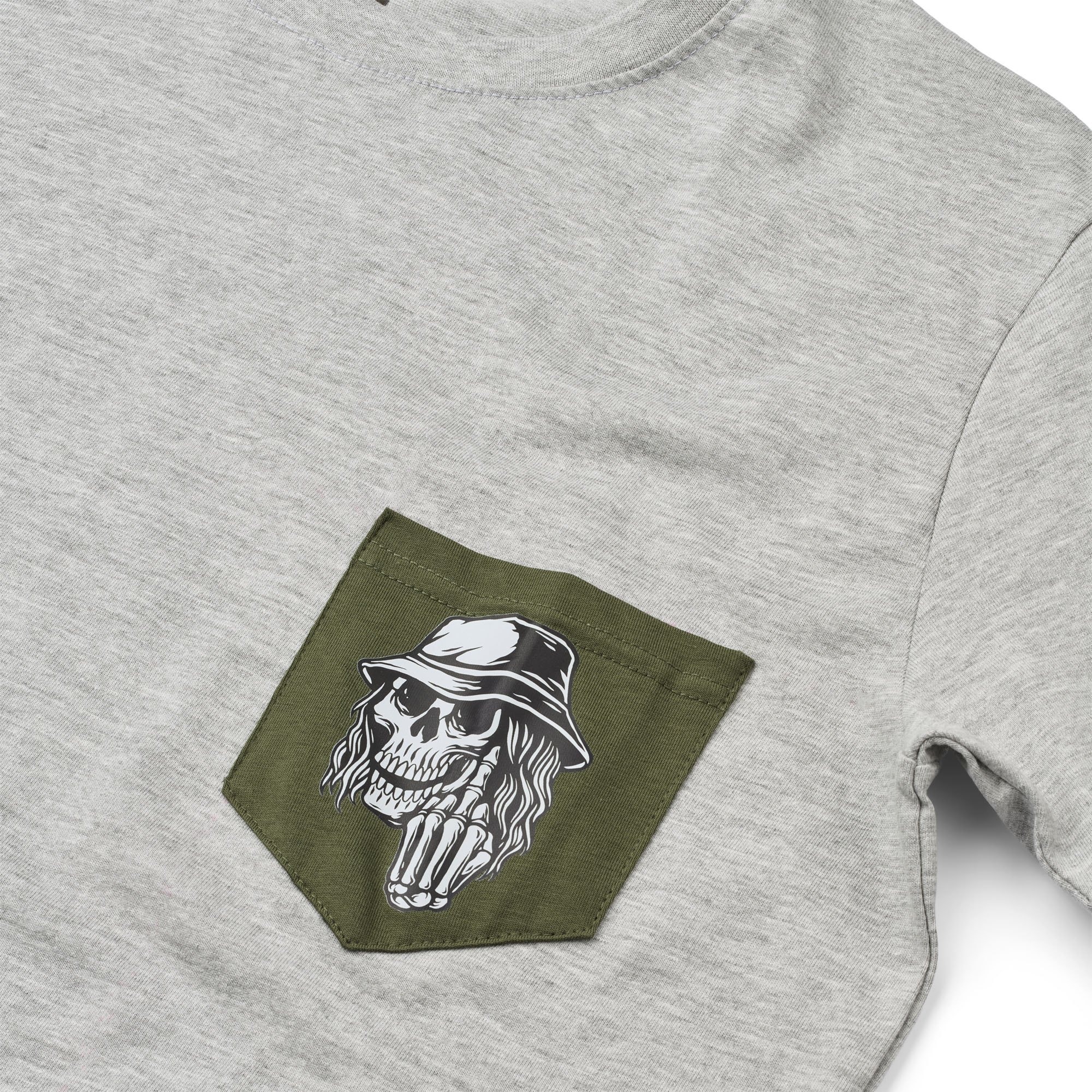 Grey 90s Ultras tshirt with contrast pocket in olive